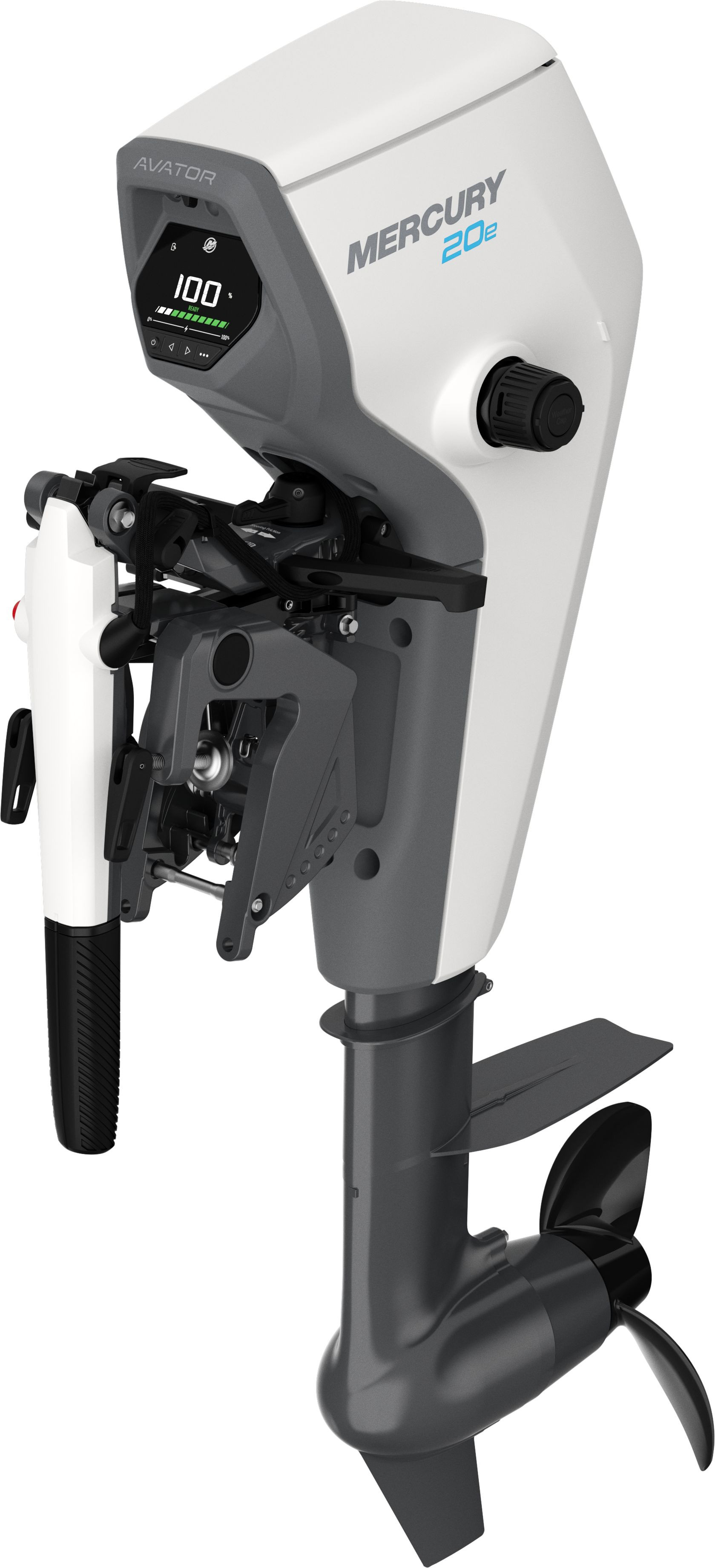 Mercury Avator E20 ELH El-påhængsmotor Batteri, kabler og andet udstyr er ikke inkluderet. Brug vores konfigurator for at bygge din egen pakke inklusiv det udstyr du skal bruge, og den batterikapacitet du ønsker.